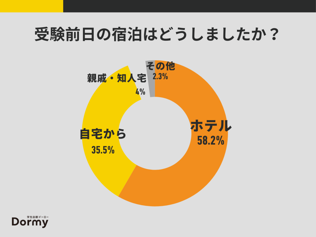 学生会館ドーミーで実施した先輩受験生へのアンケートでは「受験前日はホテルに宿泊した」というケースが多数派でした。
