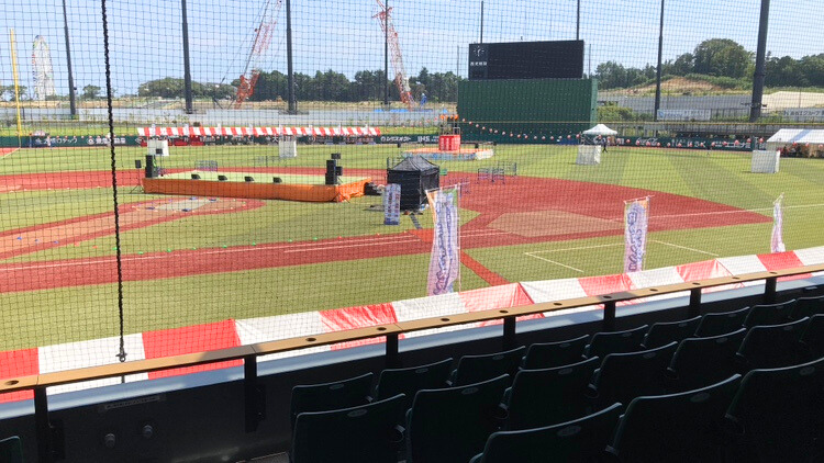 グラウンドには、ファン必見の球団の公式グッズショップをはじめ、縁日ブース、AIバッティングスイング解析も出展していました!お昼をすぎると、お笑いライブやよさこい、アイドルパフォーマンスなどが次々と披露され、その盛り上がりは夜まで続きます。