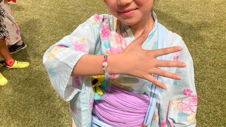夕方から夜にかけては櫓(やぐら)を囲んで盆踊りが開催され、流行りの曲や子どもに馴染みのある曲に合わせて踊る光景が広がりました。ベビーカーで参加しているご家族も多く、大人から子どもまで楽しんでいました!